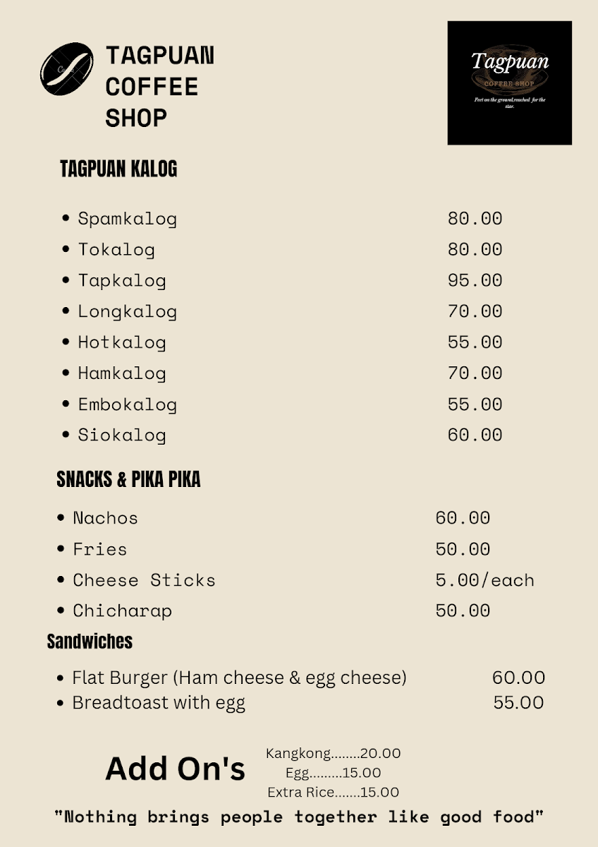 Tagpuan Coffee Shop Menu